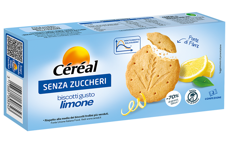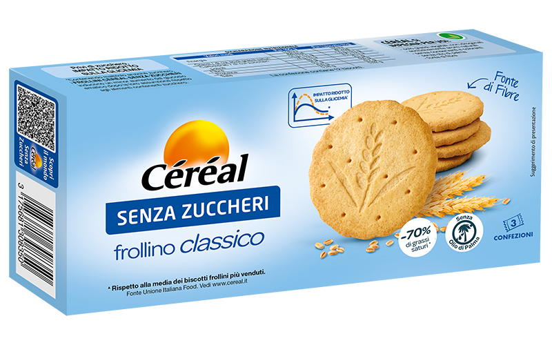 I Frollini Classici Céréal Senza Zuccheri sono ideali da mangiare in ogni momento, a colazione, o a merenda, grazie alle pratiche monoporzioni salvafreschezza da portare sempre con sé. Fonte di fibre e con il sapore autentico di aromi esclusivamente naturali, i Biscotti Céréal Senza Zuccheri, contenendo maltitolo anziché zucchero, inducono un minor aumento del glucosio ematico dopo la loro assunzione rispetto agli alimenti contenenti zucchero.
